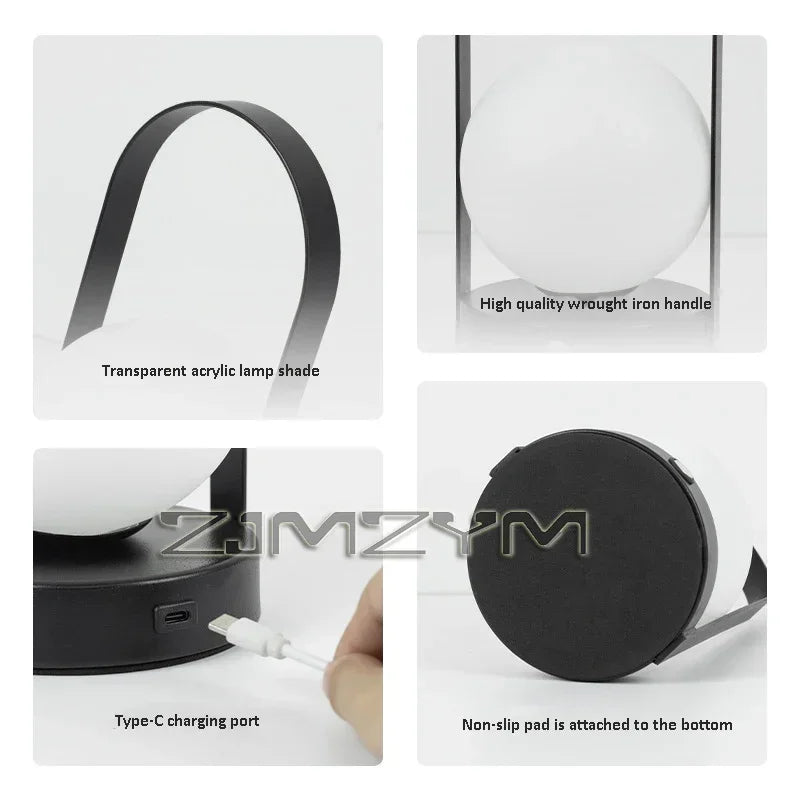 Portable Outdoor Hanging Metal Table Lamp Dimmable Wireless Table Lamp Rechargeable Bedroom Bedside Night Light